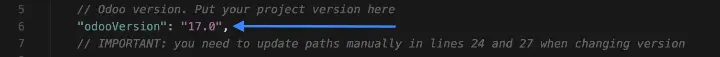 Укажите версию Odoo вашего проекта в переменной odooVersion: